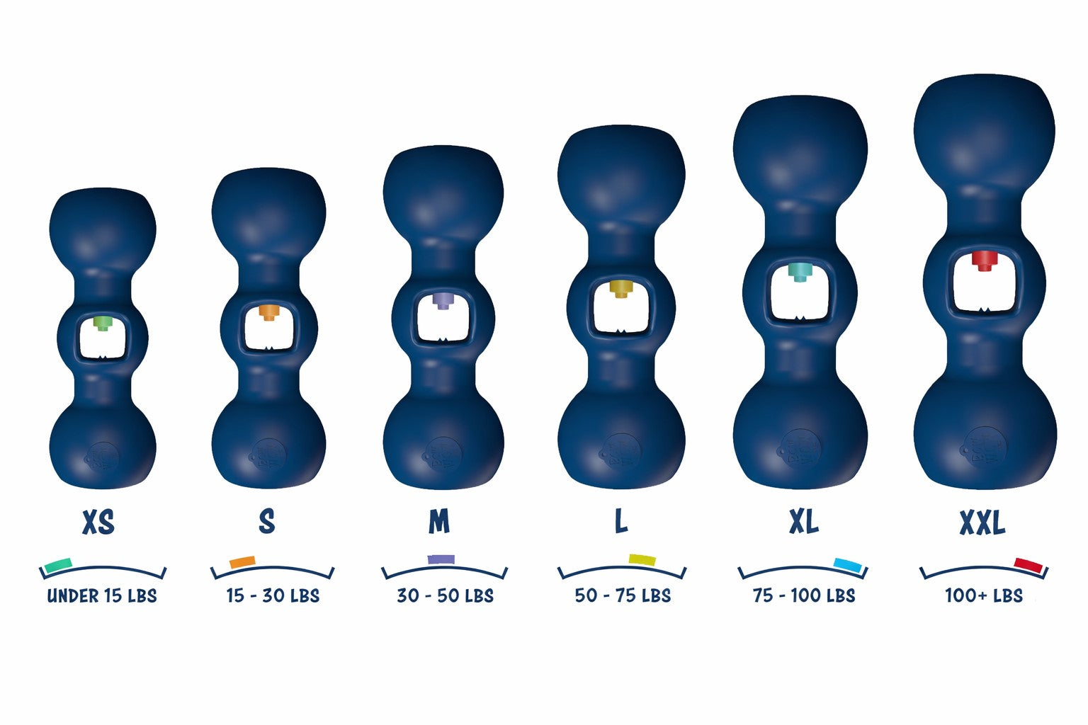 - Six sizes to fit dogs from <15 lbs to 100+ lbs